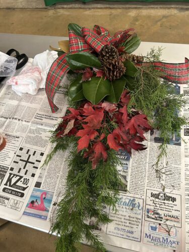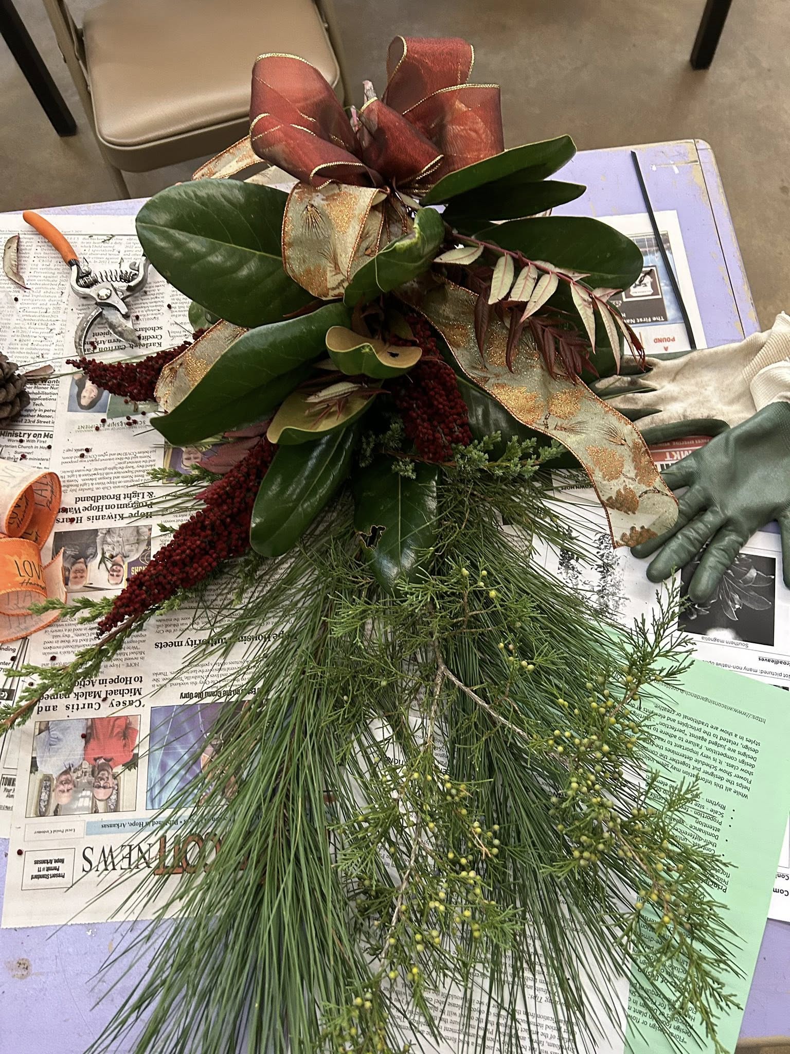 HOPE – The Hempstead County Master Gardeners held a successful greenery decorating workshop last night. Staff chair Terrie James, who has been involved in holiday decorating at Historic Washington State Park for many years shared her secrets to making beautiful natural arrangements with the group. 4-H agent Betty Wingfield spoke on design elements and principles and agriculture agent Kim Rowe shared ideas on searching for easy-to-find plants to harvest. Josh Williams, curator at Historic Washington, talked about the impact on tourism the greenery adds to the park during the holidays and the growing need for community volunteers.