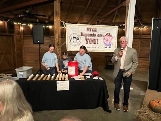 The Prescott/Nevada County Chapter of O.Y.E.A. held their annual banquet Monday (11-3) at the Barn at Willow Oak Acres. The crowd enjoyed food prepared by the Prescott Fire Department, Ko-Fields, Mike and Kyla Chambless, Hope Baking Company, Prescott Flowers, and Nothing Bundt Cakes. Dennis Guidry recognized the students and Bruce Maloch handled the live auction. O.Y.E.A. stands for “Youth Education in Agriculture”.