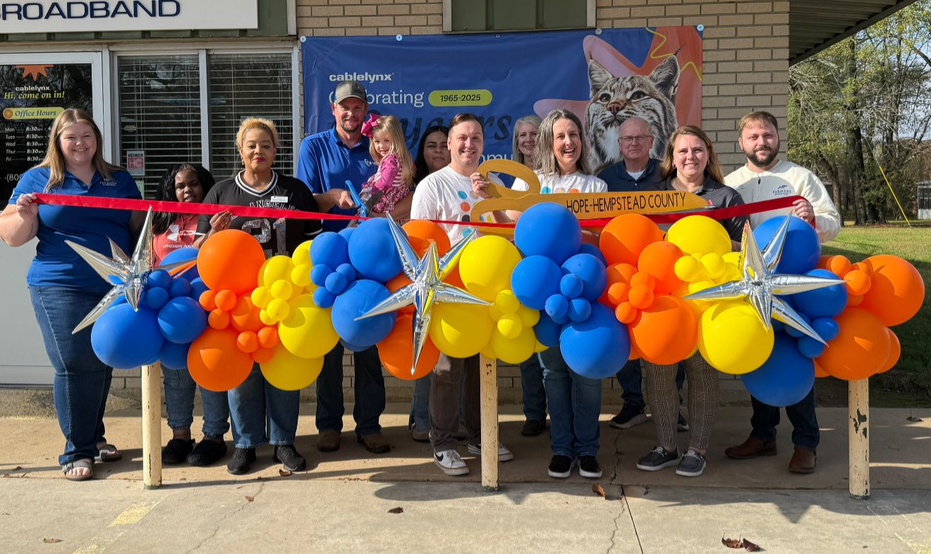 Featured News Cablelynx Broadband Celebrates Sixty Years in Hope with Ribbon-Cutting Hope Chamber of Commerce photo November 25, 2025 Cablelynx Broadband on South Walnut in Hope celebrated 60 years in Hope with a ribbon-cutting last week. Cablelynx began operations in Hope in 1965 as Hope Community TV.