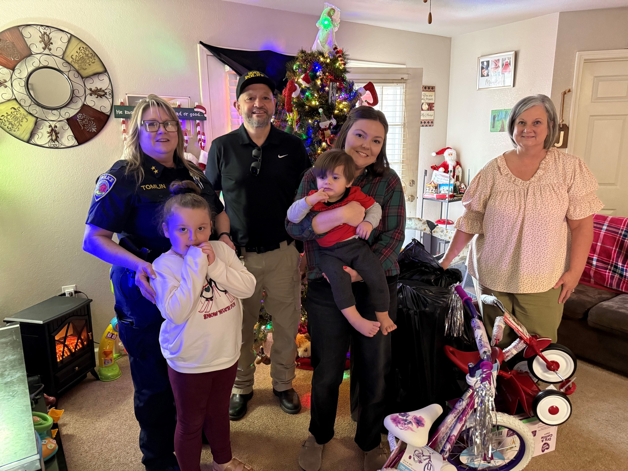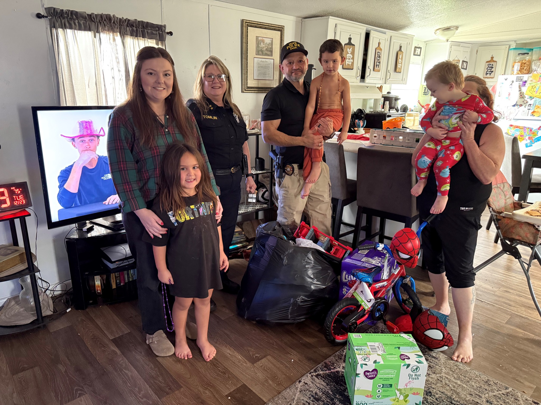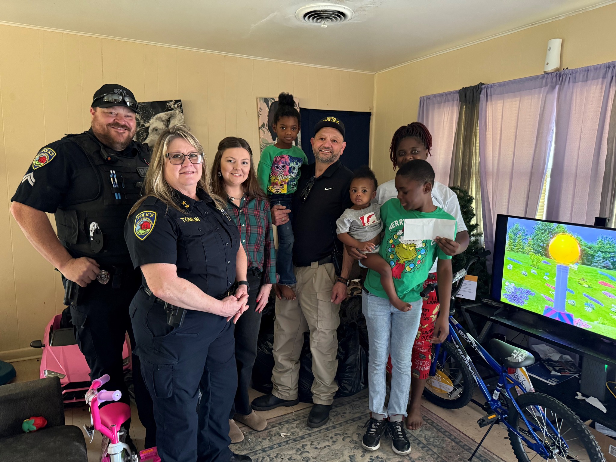 HOPE – On Tuesday, December 23rd, 2025, members of the Hope Police Department delivered gifts to eight families during our Santa Cop Program.