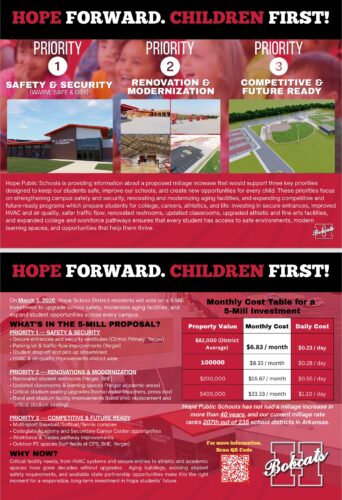 Hope School District has released this information sheet with graphics asking voters for approval.