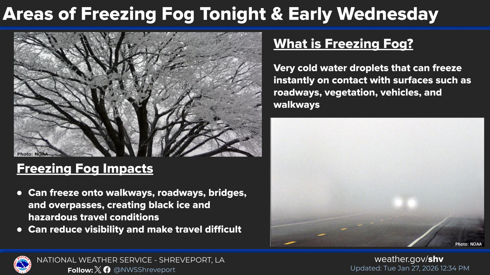 Featured Hempstead County News Nevada County News News Regional News Be aware of freezing fog overnight National Weather Service-Shreveport January 27, 2026