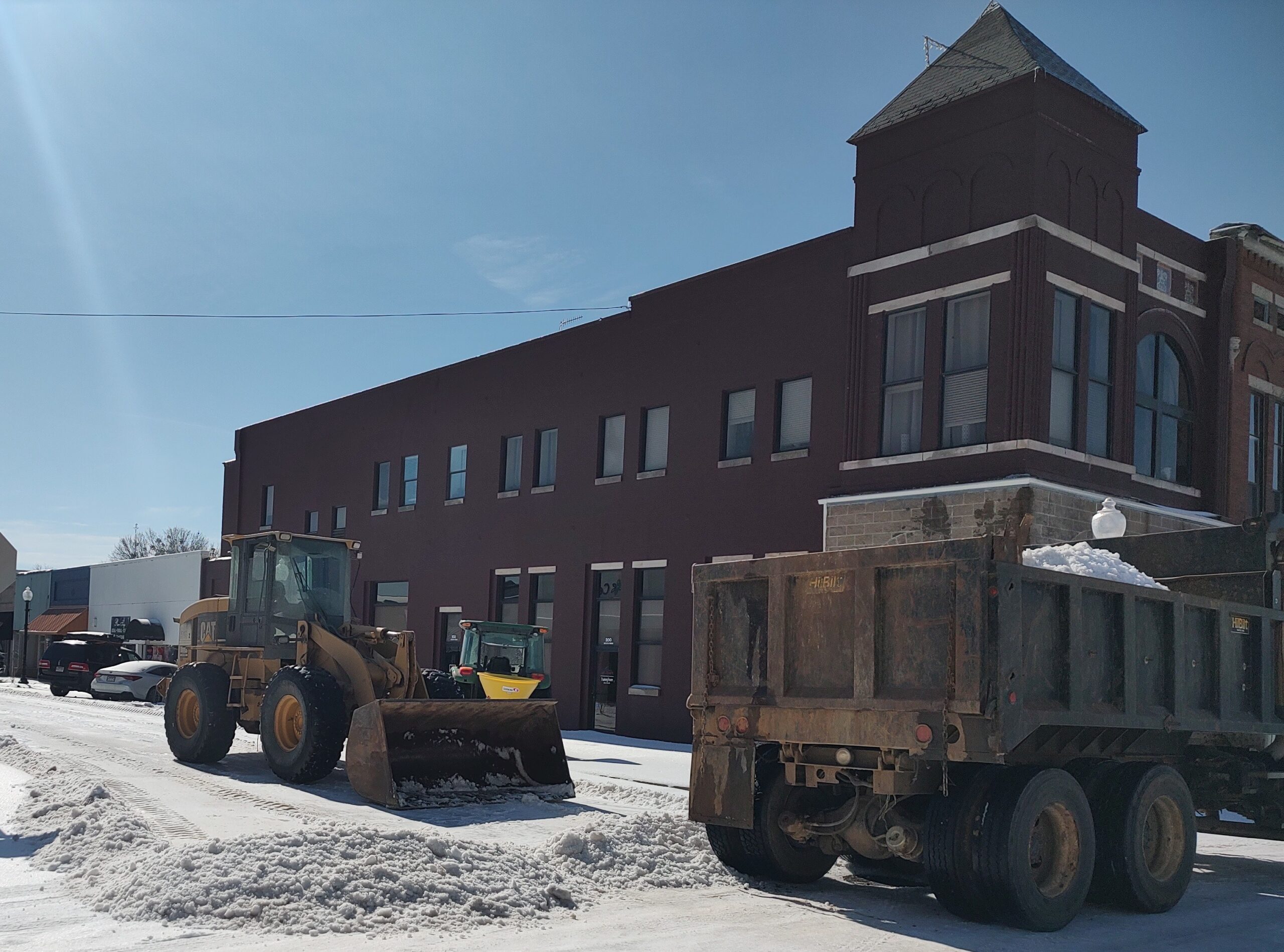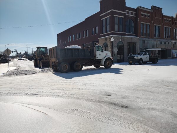 The city of Hope came downtown Tuesday and removed the sheet of ice that covered the streets from the sleet storm.  The clearing was much appreciated by the merchants.