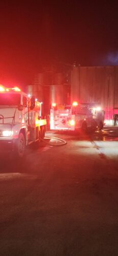 HOMAN – The Fulton and Guernsey Volunteer Fire Departments provided Mutual Aid Assistance overnight at an industrial fire at Tyson – Texarkana River Valley Animal Food plant near Homan in Miller County.