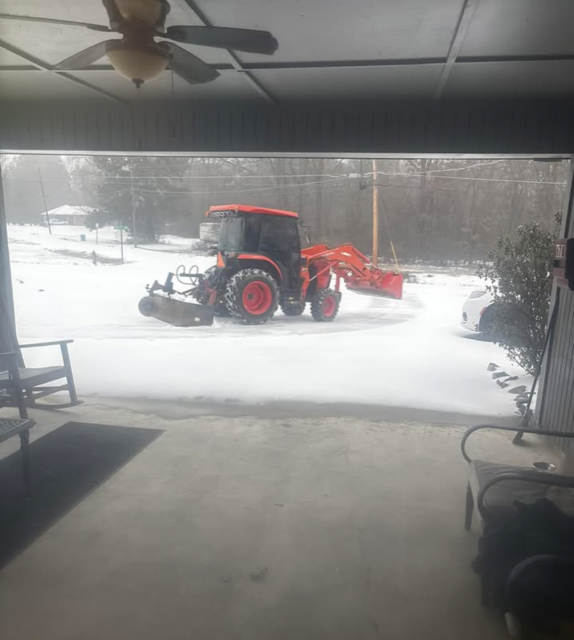 PRESCOTT – Pictured is a workman with his equipment, clearing ice off the driveway of Hatley House in Prescott. The Hatley staff reported the heavy equipment is usually brought into clear places such as nursing homes and other critical spots in Prescott and now they have added Hatley House, providing safe footing for our individuals getting out to shop for groceries, or trips to the variety of stops in Prescott.