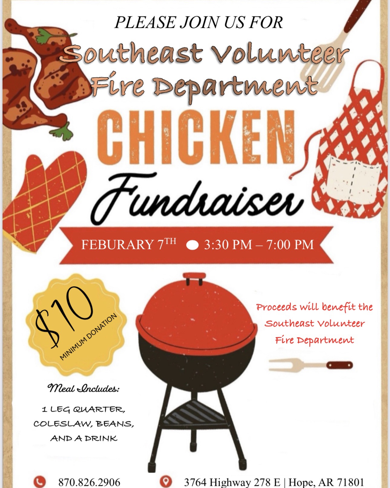Featured Hempstead County News News Southeast Volunteer Fire Department fundraiser this evening Dale Gathright, Jr. February 7, 2026