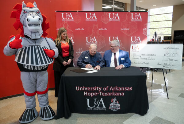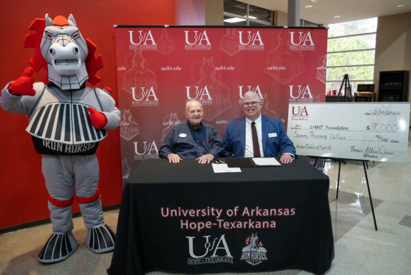 TEXARKANA – Thomas Allen Jones, of Texarkana, Arkansas, gifted $70,000 to the University of Arkansas Hope-Texarkana Foundation yesterday to establish the Pioneer Families of South Arkansas Endowed Scholarship. Jones said, “The donation was made to memorialize the founding families who settled in South Arkansas and to encourage them to support education in the area.” The scholarship will be available to UAHT students pursuing a health professions degree.