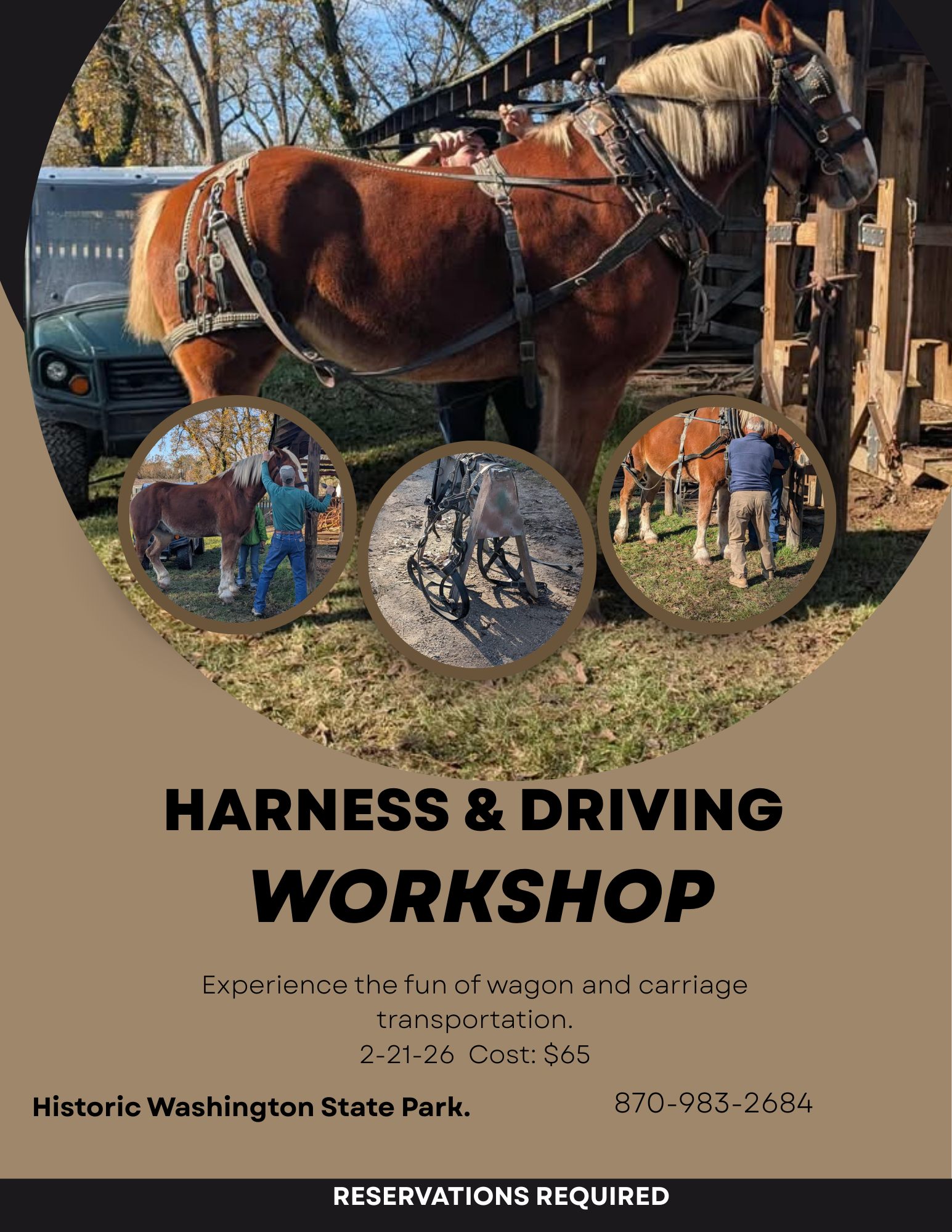 WASHINGTON – Join the animal curator at Historic Washington State Park on Saturday, February 21, from 9 a.m. to 3 p.m. This workshop covers the basics of safe harnessing and driving horse teams. If you like hands-on learning opportunities and want to experience the fun of wagon and carriage transportation, this class is for you!