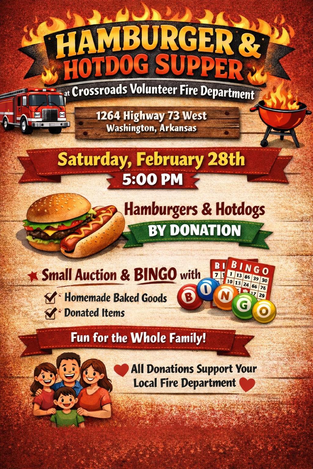 Featured Hempstead County News News Cross Roads VFD Hamburger Supper this evening Dale Gathright, Jr. February 28, 2026