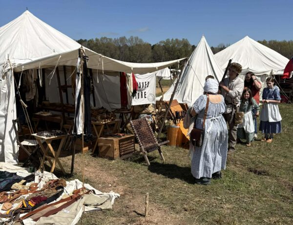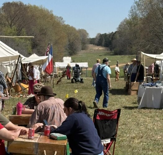 The Rendezvous is taking place at Prairie D’Ane Battlefield, 2243 Highway 19 North, Prescott, Arkansas, with food vendors and period merchandise available on site. Hosted by the Nevada County Depot and Museum, the event features authentic 18th- and 19th-century mountain man encampments, historic demonstrations, skilled traders, food vendors, and hands-on activities that bring America’s frontier era to life. Visitors are welcomed with smiles and encouragement to explore.