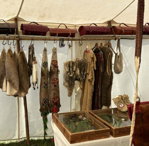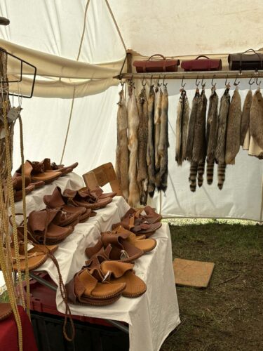 Traders and craftsmen lined the encampment, offering handmade goods and period merchandise. Fur caps, jewelry, and other frontier-style items were on display, and trading — not just buying — was actively taking place. Vendors gladly explained how their items were made and how they would have been used during the era, adding an educational element to every interaction.