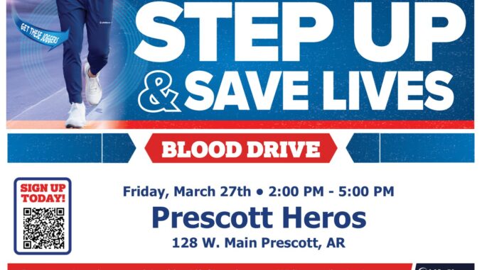 Please come out and safe a life. You can call 870-887-6779 if you would like to sign up or you can scan the QR code and sign up yourself.