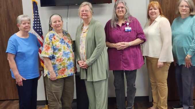 New Officers for John Cain-Benjamin Culp Chapter for 2026-2027 are as follows: Left to right, Sandra May, treasurer; Georgia Estes, secretary; Brenda Barham, chapter regent; Cindi Newsom, registrar; Betty Wingfield, vice regent; Lillian Anderson, historian; and Betty Harris (not pictured) chaplain.