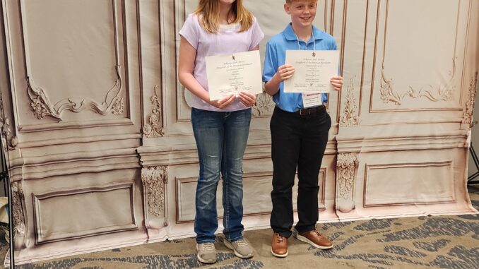 LITTLE ROCK – Haylee Burke, 6th grade winner and Michael Massenelli, 5th grade winner, received certificates and cash prizes for being Arkansas DAR winners at the Arkansas State DAR Conference in Little Rock on March 25th. They each wrote an essay about something in American History.
