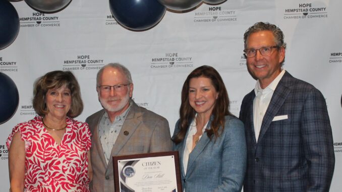 The Citizen of the Year was Hope Mayor and local longtime auto shop owner/operator Don Still. Presented by 2025 Citizens of the Year Ben and Jamie Pafford. The first thing Still wanted to do was thank his wife Betsy for being supportive of him and his various roles he took on over his long career as not only a reputable mechanic and boss, but very active in his church and serving on many boards and committees that helped plan the direction of Hope and its citizens.